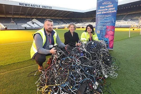 Newcastle City Council and Newcastle United encouraged fans attending a Newcastle United’s Premier League match to bring in their old cables to be recycled – and collected enough to wrap the pitch over 14 times!!